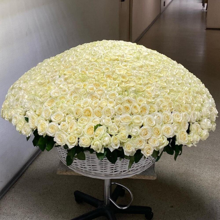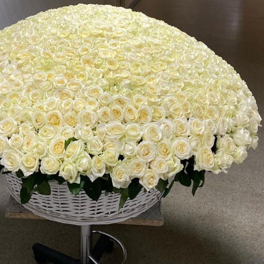 1001 белая роза в корзине «Чистота»