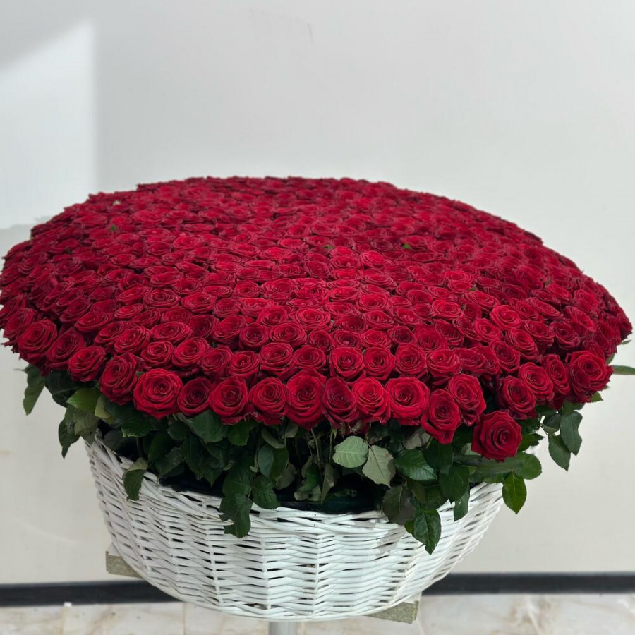 На фото букет из 501 красной розы в белой корзине. В составе: роза 501 шт, оазис флористический 5 шт, корзина (xl) 1 шт, . Все цветы свежие и ароматные, букет красиво оформлен и отлично подходит для подарка. Доступна доставка цветов или самовывоз.